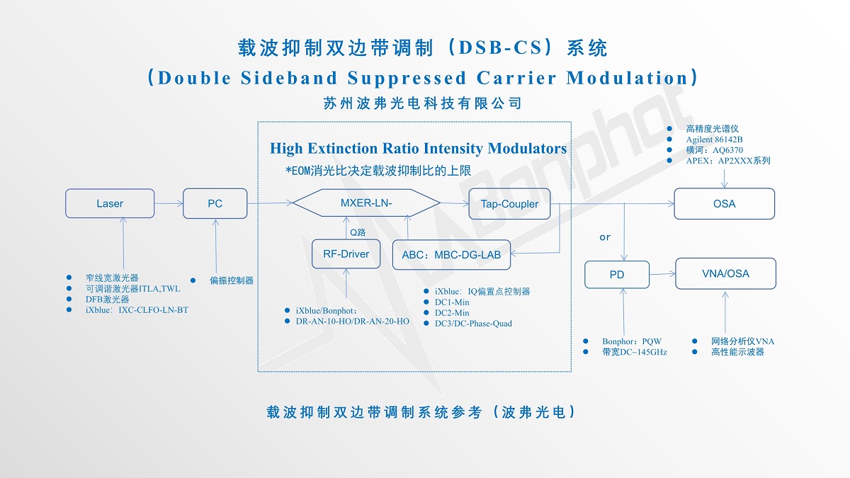 *双边带调制应用中,EOM的消光比决定了载波抑制比的上限,高消光比调制器能够更轻松的获得更高的抑制比、更高的对比度,苏州VSport-胜利科技有限公司提供的法国iXblue高消光比调制器MXER-LN系列,消光比30~+40dB,是市面上所能提供的单个强度调制器最高的消光比(不借助偏振器、偏置电压调谐等外部处理情况下),多种选择,满足不同指标要求。