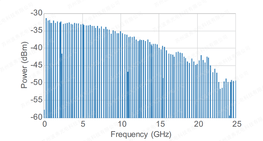 EPG-210 也可用作射频频率梳源。 输出脉冲具有跨越 25GHz 以上的高速射频分量,而梳状线的频率间隔可以通过调整脉冲重复率进行调整。 应用包括射频天线的表征。