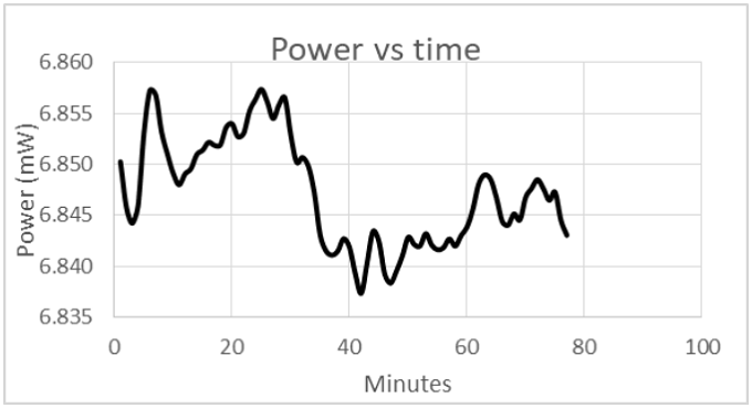 功率与时间的关系图@(室温,1.5h)显示了出色的功率稳定性,适用于插入损耗测试等应用。