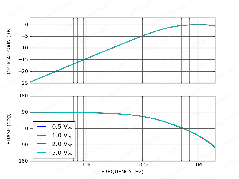 交流调制输入可用于调制1 MHz以上的激光器,调制增益为20 mA/V: