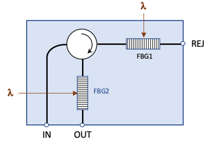 基于2个无热FBG和一个光环行器的滤光片 |