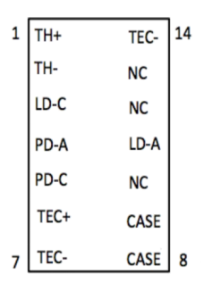 | 适合激光二极管类型 | 同轴TOSA/TO封装 | 14PIN 蝶形封装,2.54mm | 14PIN 蝶形封装,2.54mm |