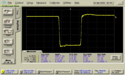 500ps脉宽 @时钟频率. 100kHz,输出电平 4.6Vpp |